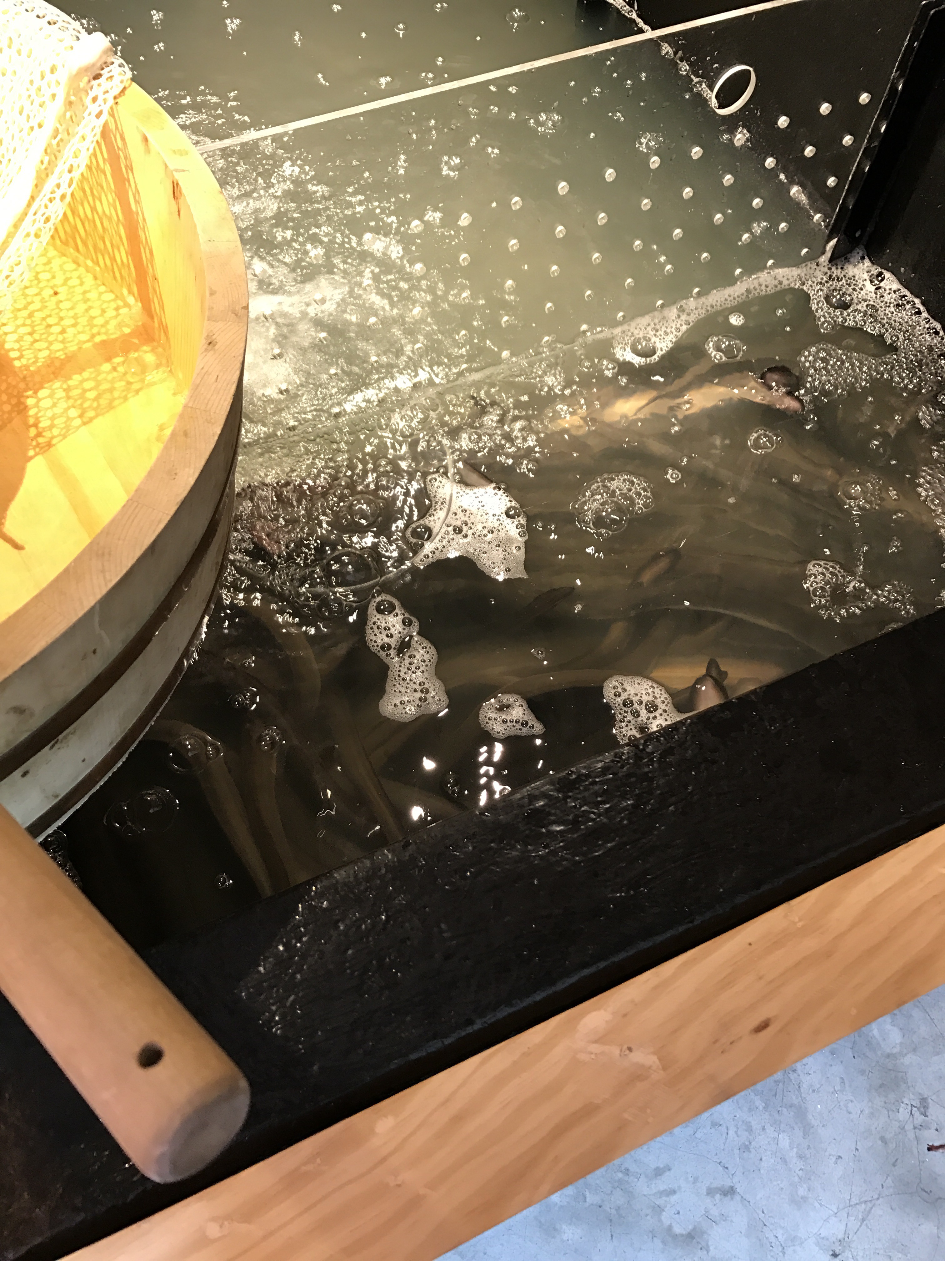 Sitting by the counter gets you full view of unagi happiness. The well fed eels are grilled over charcoal!