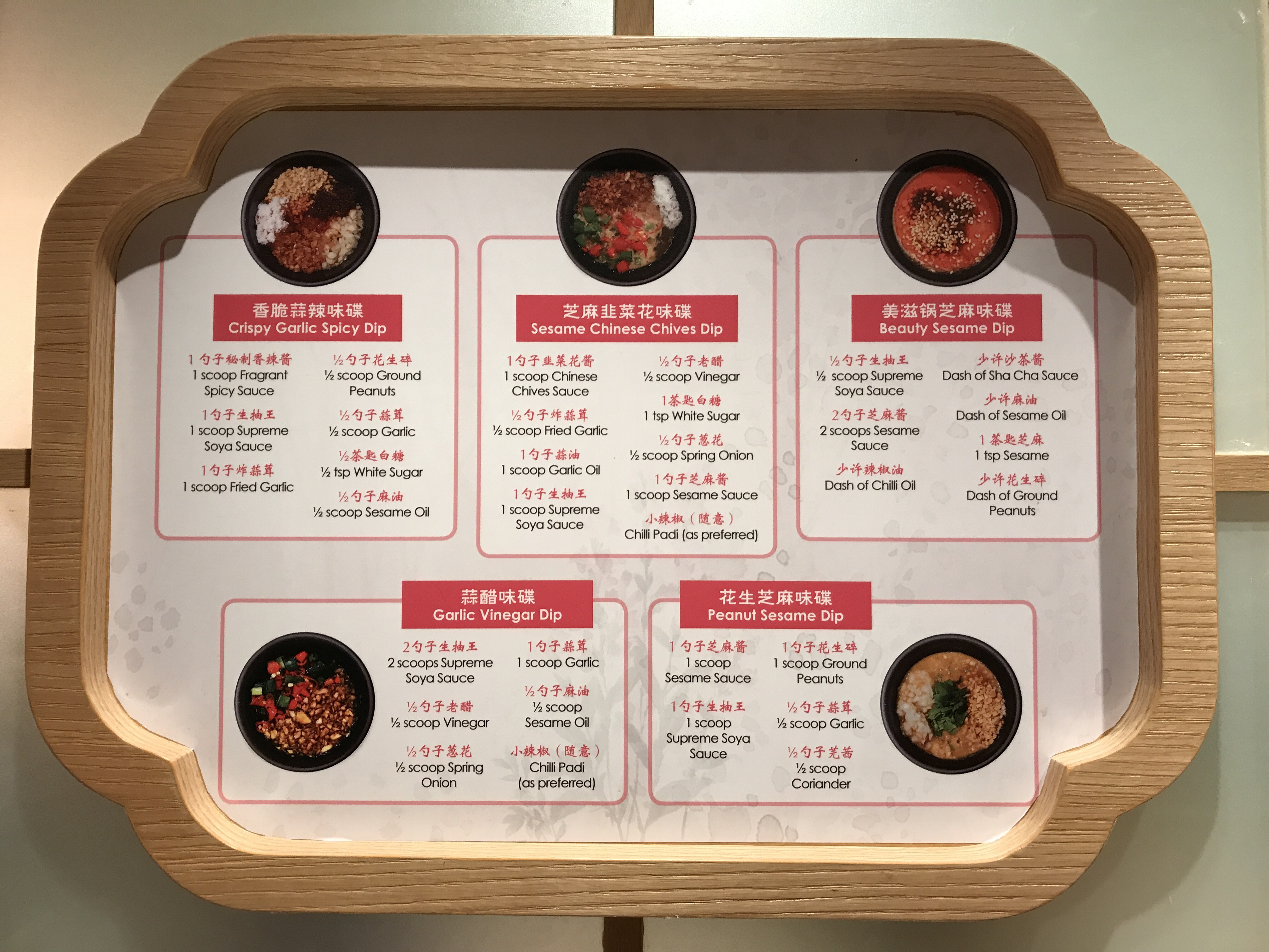 Instructions on the board that will teach you how to make the best combination sauces. I liked their crispy garlic!