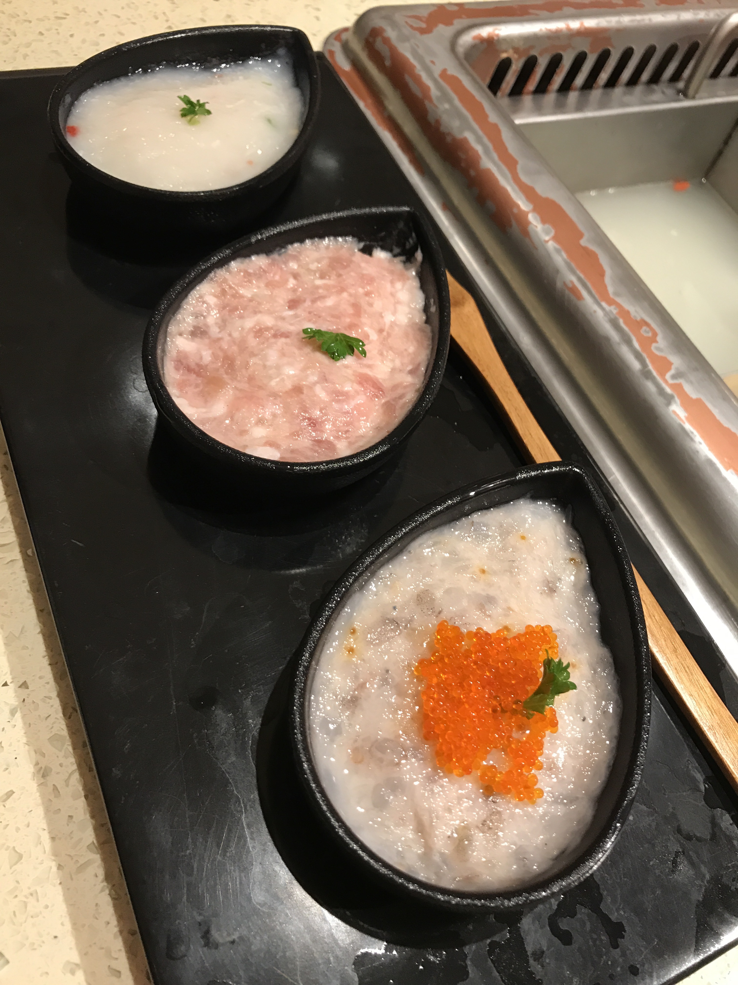 I liked the one with the fish roe the most. It’s chewy and the little bits of fish roe will pop in your mouth. The service staff will help to scoop these into your soup.