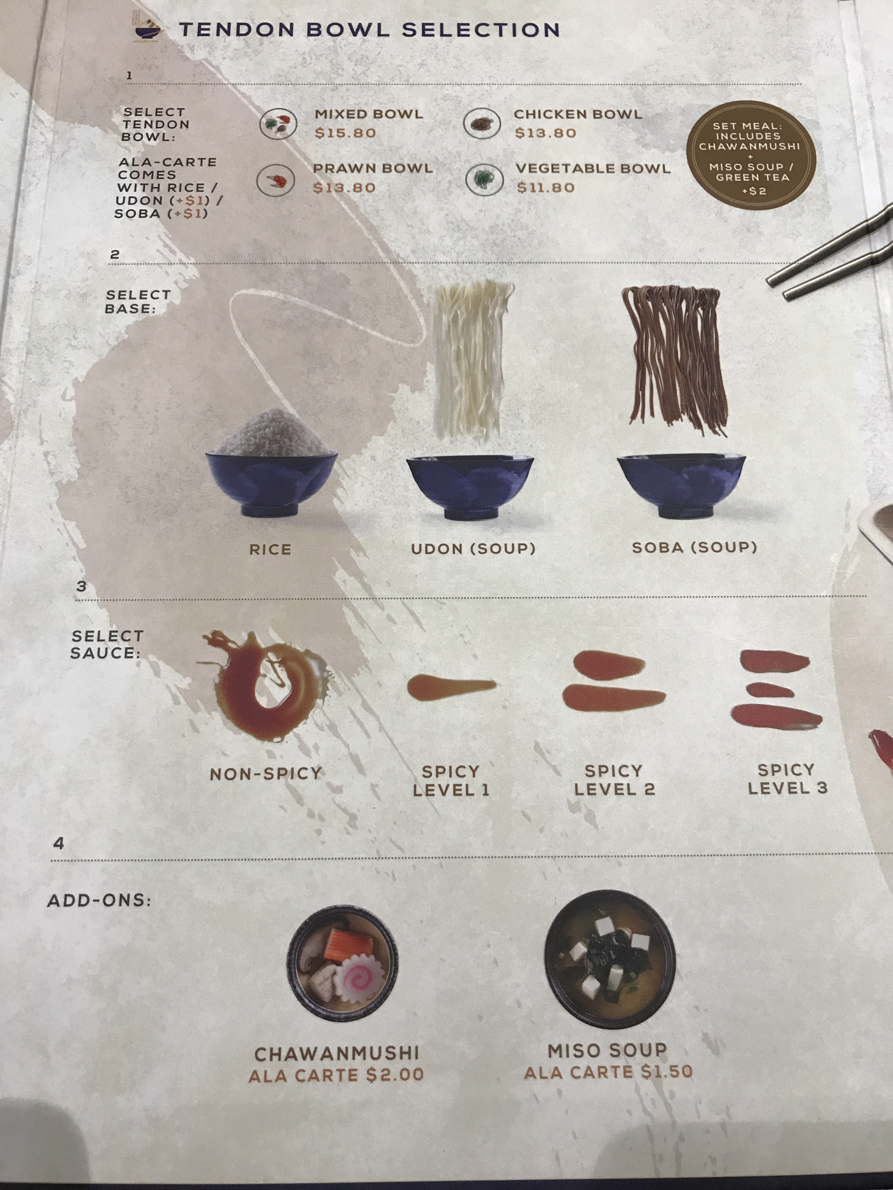 But… chey. Customisation here refers to choosing which type bowl you want, choosing your carb (which honestly is also offered in some tendon shops), and choosing your spiciness level. Erm okay.