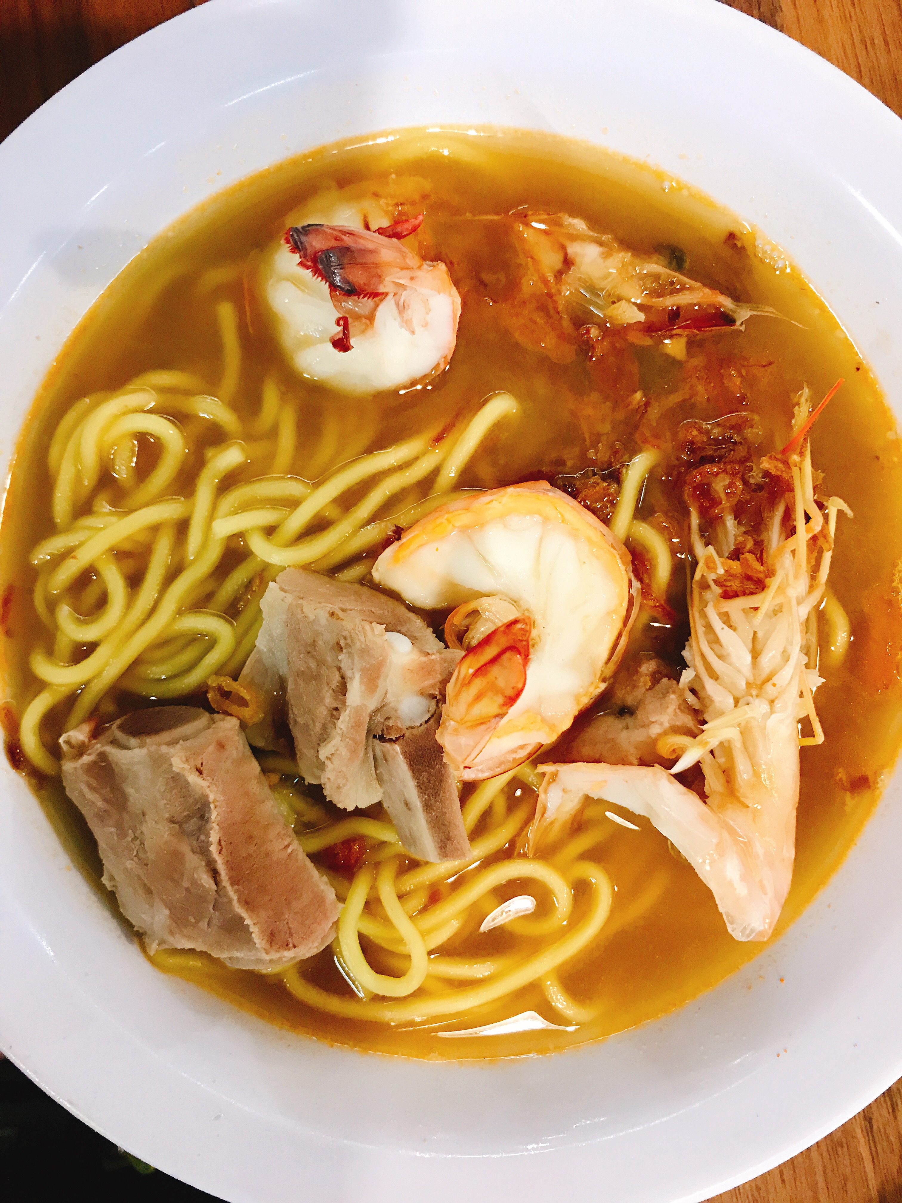 Took a quick walk around and finally decided on three dishes – prawn mee, pig’s organ soup and satay. I don’t remember the store names, but Balestier Food Market is rather small so it’s easy to find them.