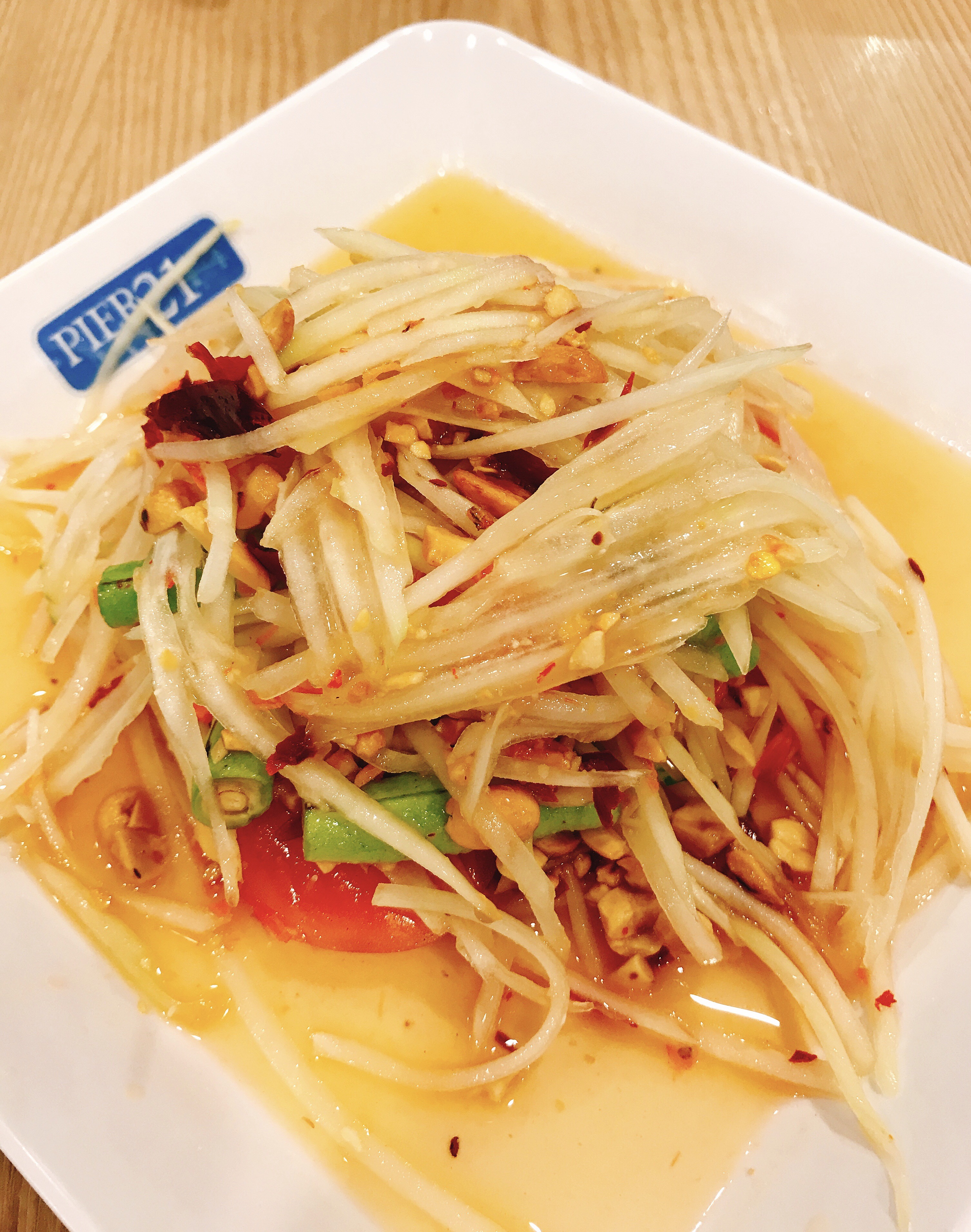 The prices at Pier 21 are so affordable (average about 50baht, $2.50 SGD)! The natural instinct is to over order, but please control yourself. I tried the Pad Thai, Papaya Salad, Tom Yam Soup, Braised Pork Rice and Mango Sticky Rice. Of all the dishes here, the weakest was the Tom Yam Soup. You can skip it.