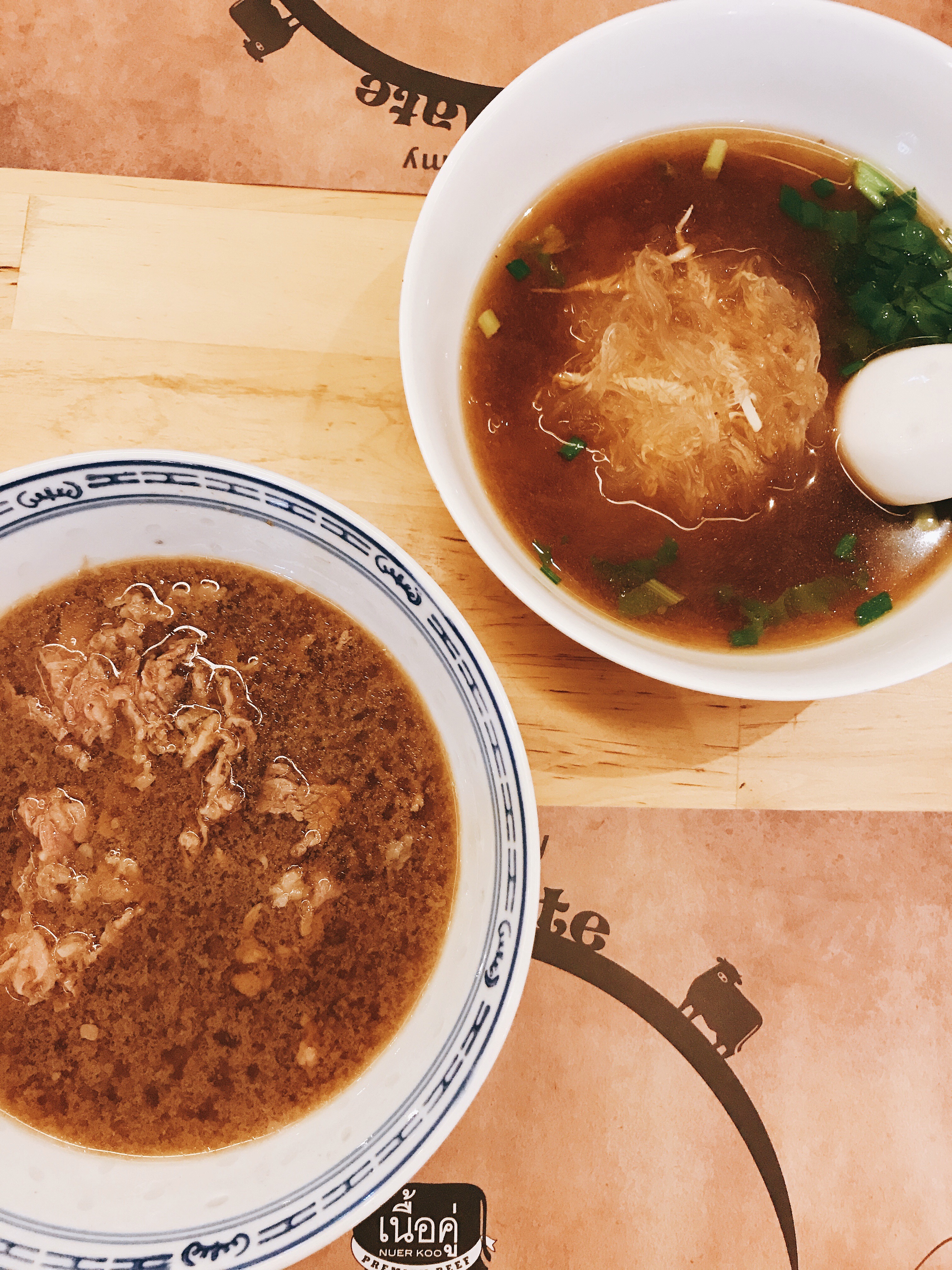 Introducing Nuer Koo! It’s basically sliced beef in a simmered beef broth that’s not any like I’ve tried before. These beef noodles do not come cheap, ranging from 180baht to 950baht ($8 to $38 SGD) for various types including rib eye and Kobe beef. The beef doesn’t come with staple so you’ll have to top up another 25baht for noodles. I tried the Australian Wagyu and it was so good. Trust me, it was so good that I’m having cravings for it right now in Singapore. Grrrr.