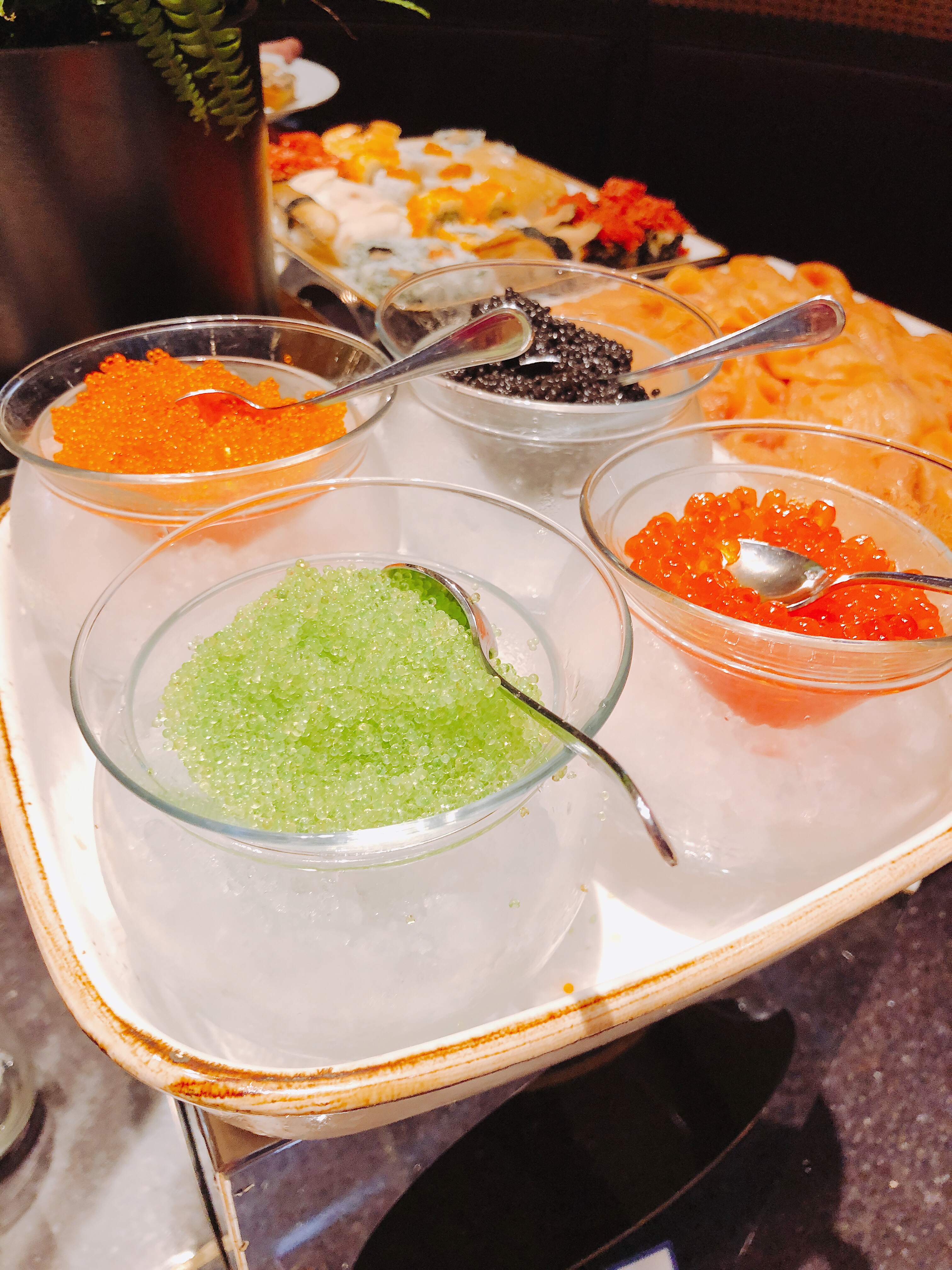 Surprise after surprise. Caviar madness! They have a good variety of condiments to go along with the caviar. I had mine with the raspberry dressing. Yums.