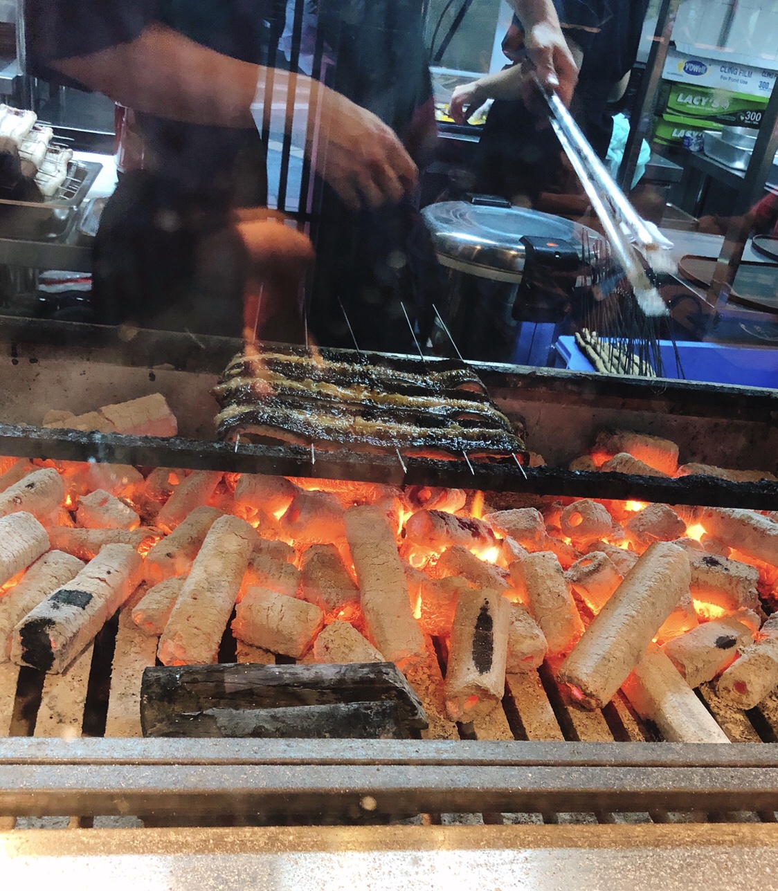 Chef starting to grill the eels. I read that they steam their eels before grilling them to give that crispy texture.