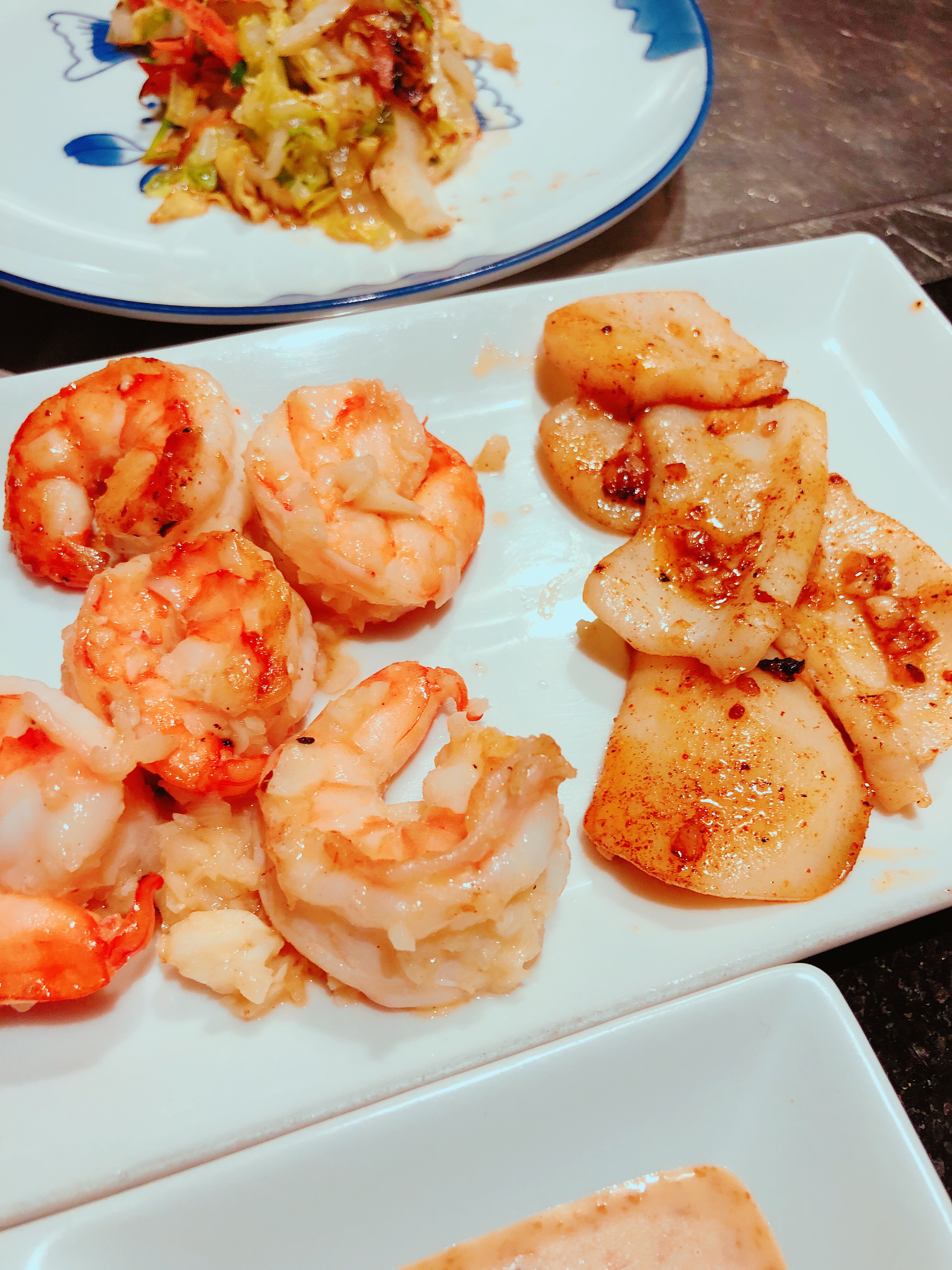 All the food was already apportioned for my party of six before we arrived. So the cooking was rather seamless, one dish after another.