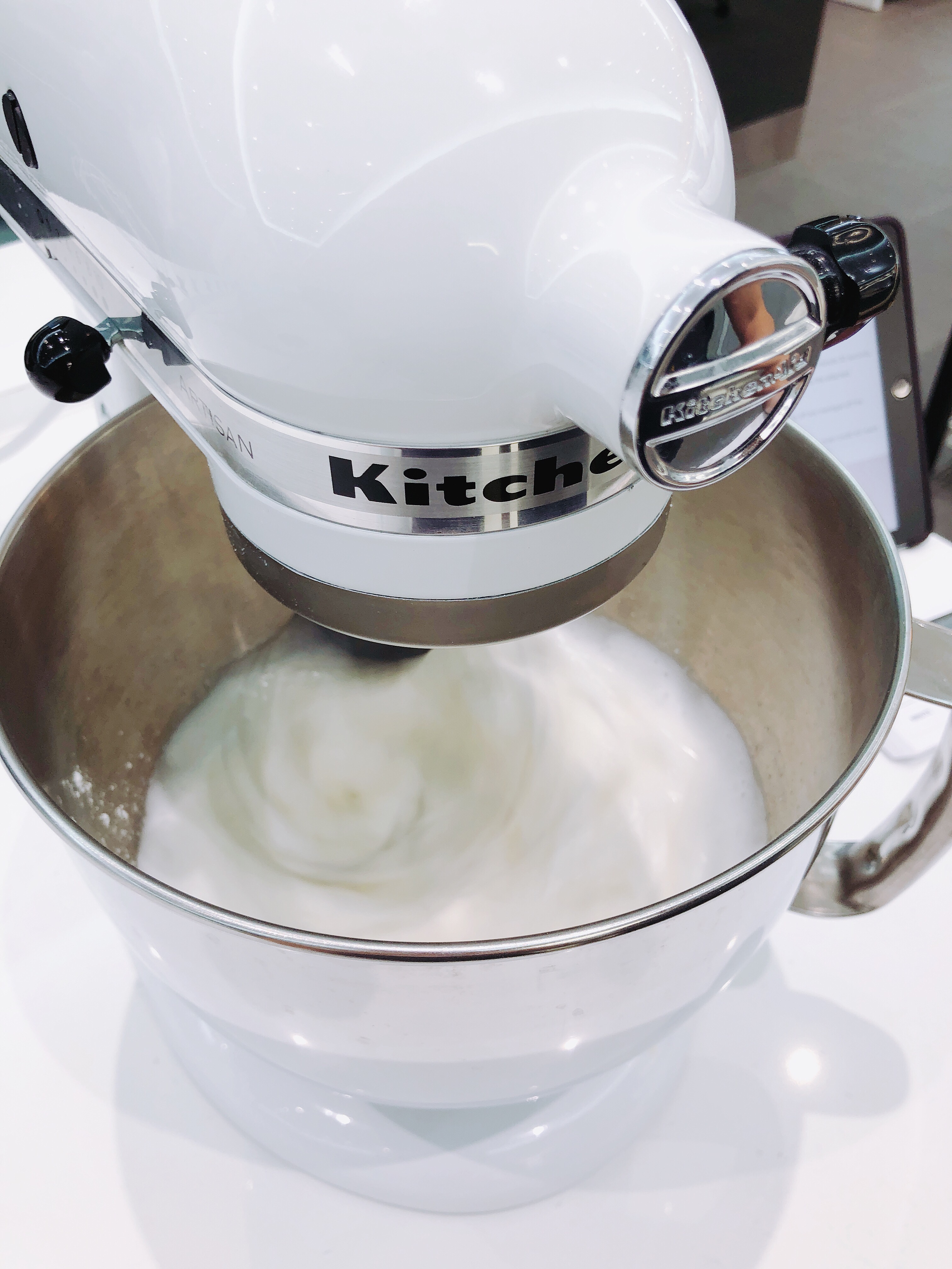 If you have baked before, you’ll know how difficult it is to get the soft peaks/ hard peaks correct. Here at Funsiamo, the staff generally lets you do your own mojo, but at critical junctures like this they’ll be there to assist. I got the perfect egg white texture with their help.