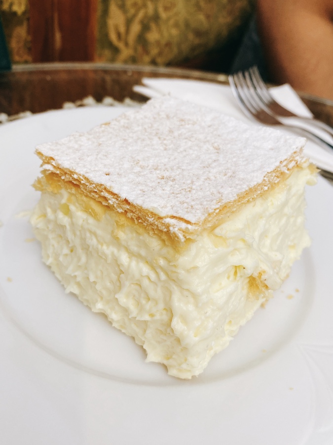The highlight of this traditional pastry is exactly what its name suggests, cream. It’s essentially a generous serving of vanilla pastry cream held by two layers of puff pastry and dusted with powdered sugar. I thought I would be sick of the cream by the third mouthful but instead, I found myself wanting more and more. The cream itself was quite light and airy and it surprisingly wasn’t as sweet like normal whipped cream.