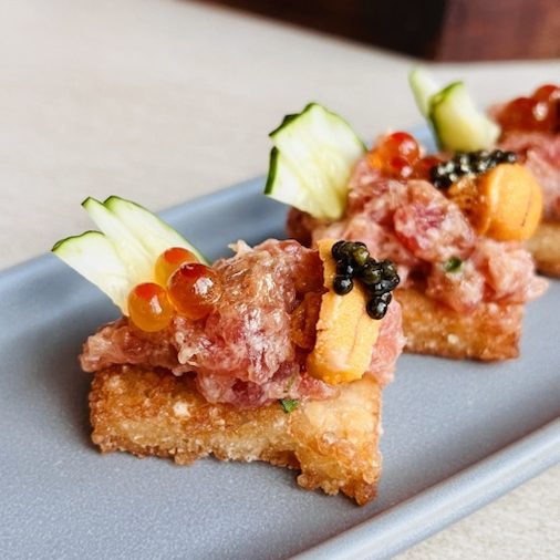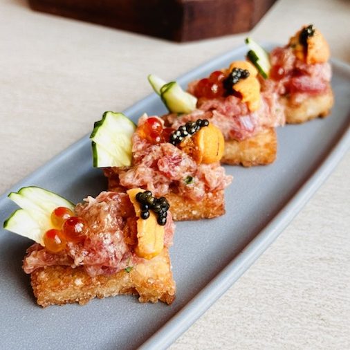 The Uni, Caviar, Ikura Crispies is literally what the name luxuriously suggests, with a spoonful of negitoro and a spray of gold dust. This appetiser actually comes in 3s, but you can have the option to top up for one or two more pieces depending on the size of your party.