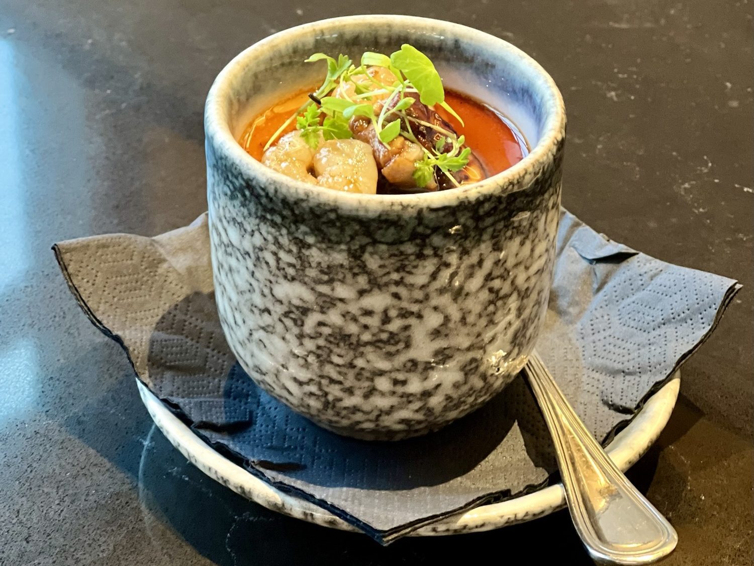 Warm, satisfying bowl of silky steamed egg topped with prawns, foie gras and aromatic truffles. This was a special menu item so I was glad to have caught it.